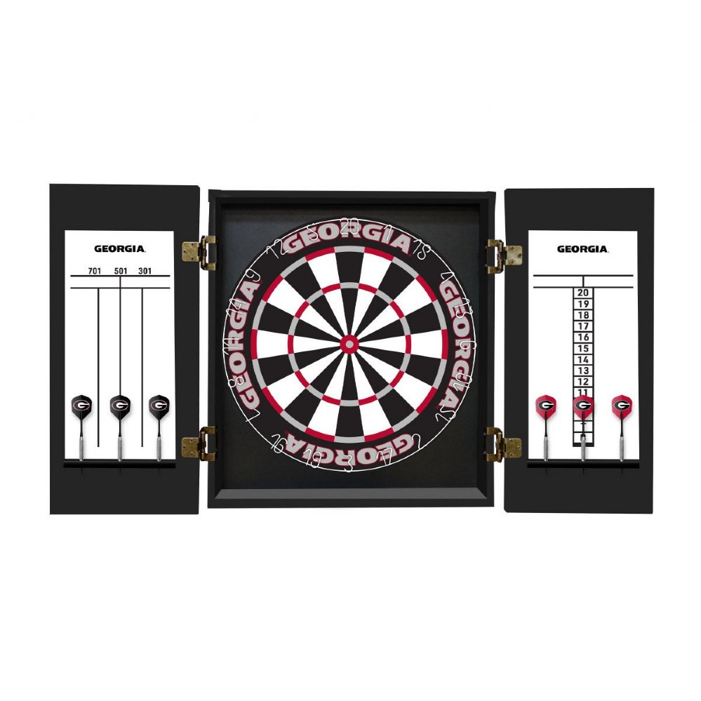 University of Georgia - Georgia Bulldogs Fan's Choice Dartboard, Dart & Cabinet Set in Black